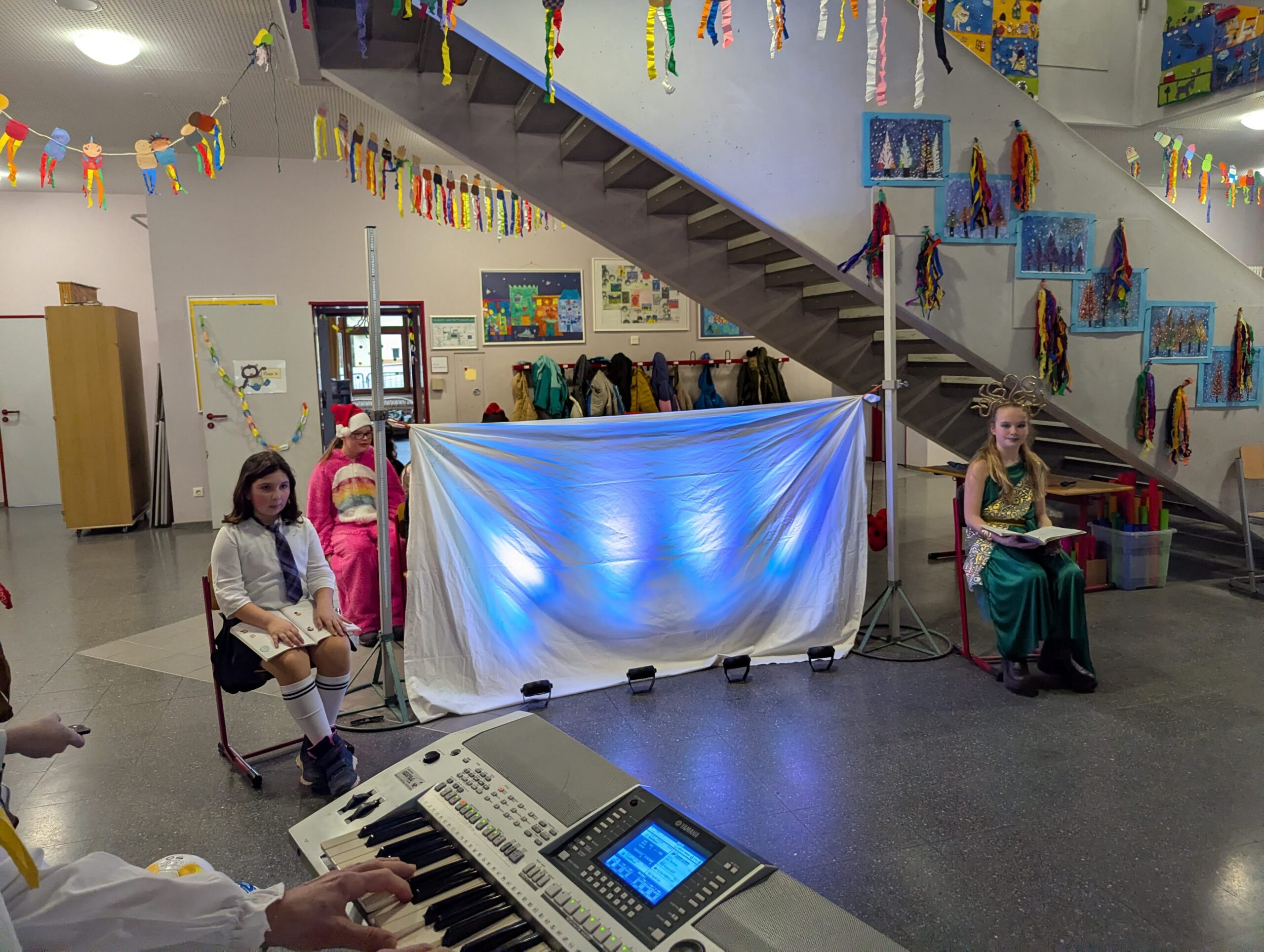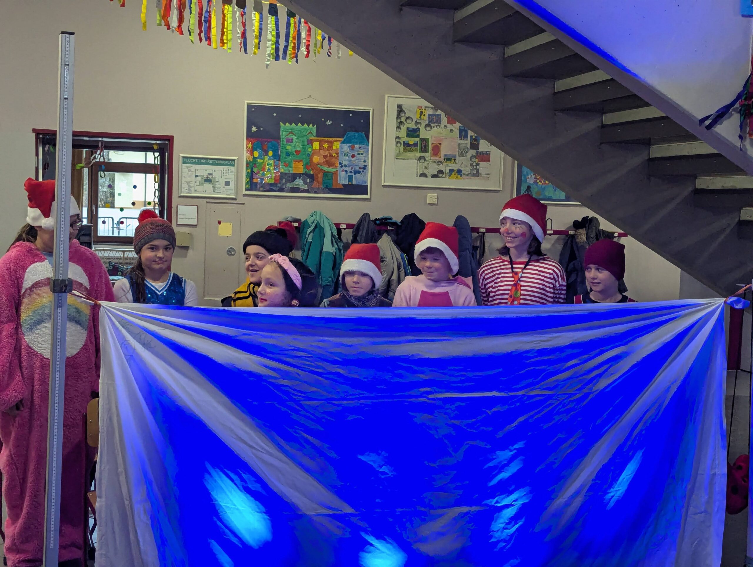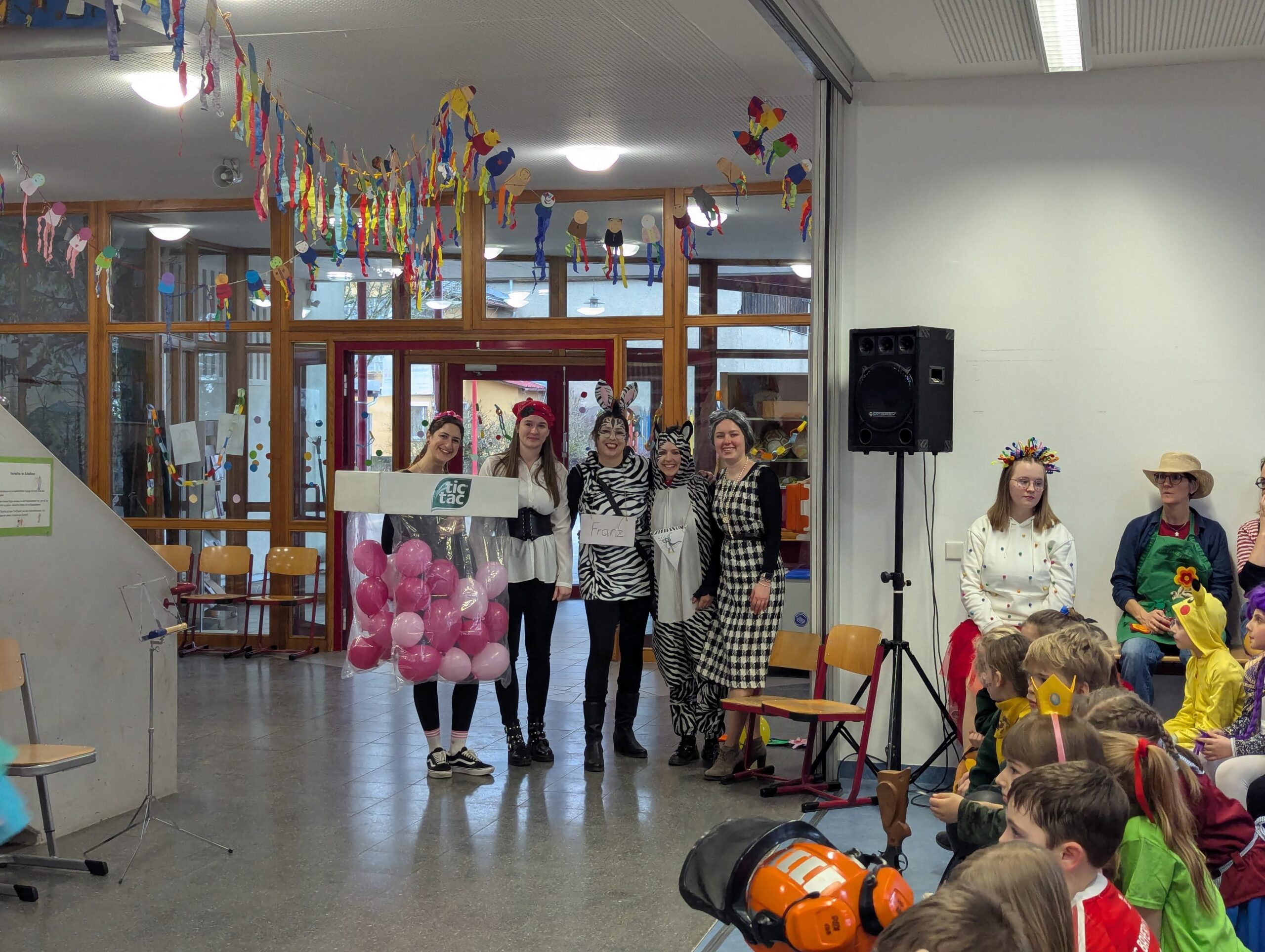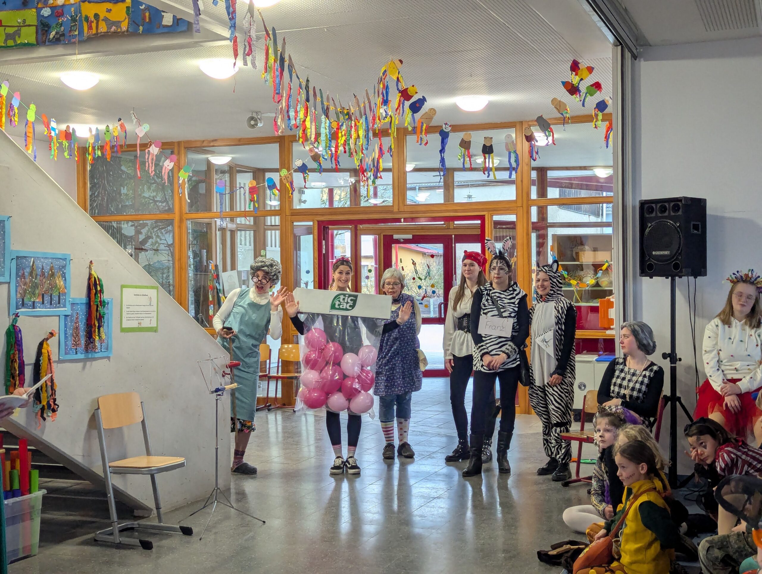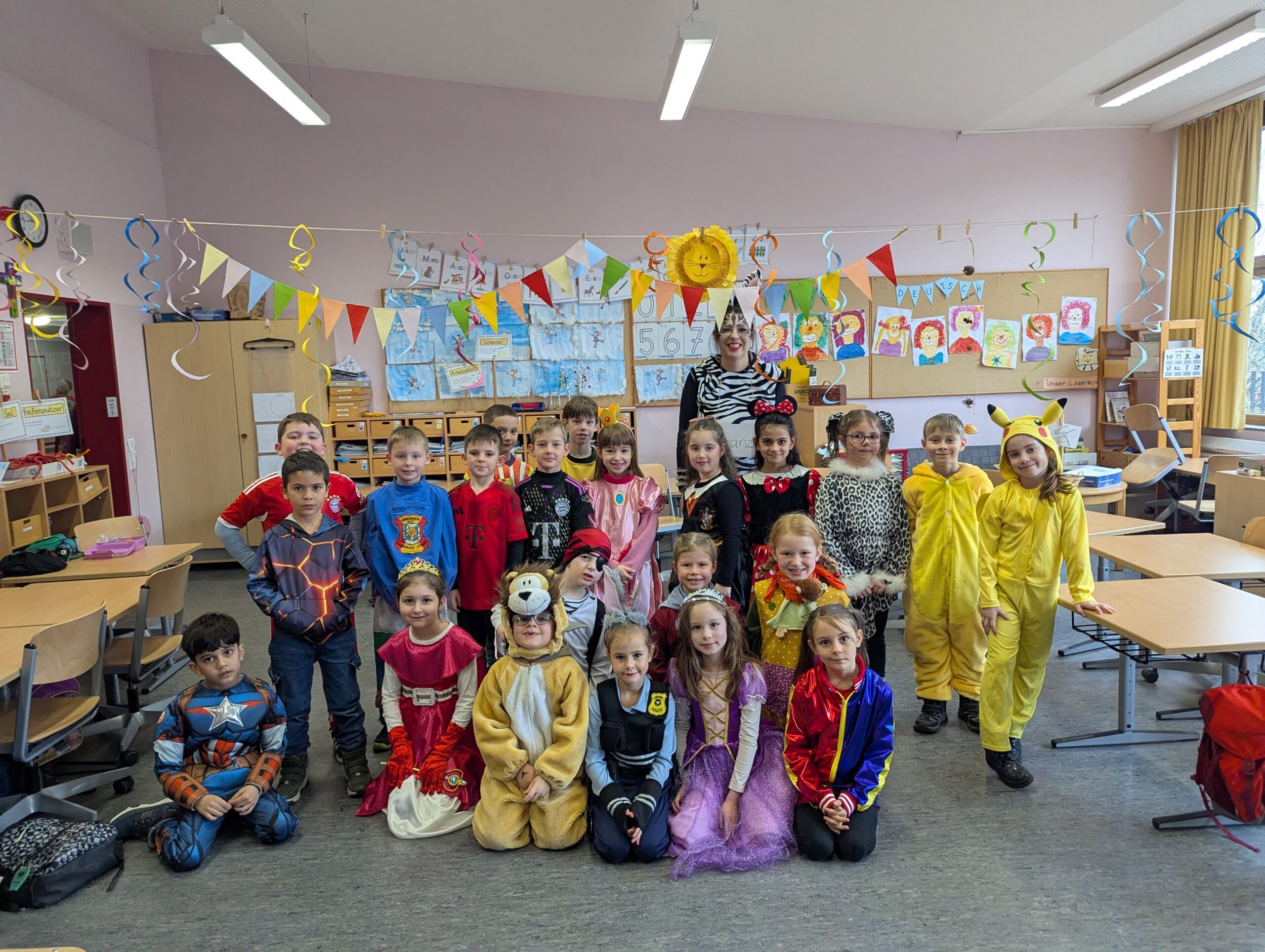 Am Donnerstag, 12.02.2026 haben auch wir an der Grundschule Fasnet gefeiert. Alle Schüler und Lehrer kamen in bunten und verrückten Kostümen. Nach einem individuellen Programm im jeweiligen Klassenzimmer holte uns der Schulleiter Herr Endres mit einer riesigen Polonaise, die in unserer Aula endete, ab. Auch hier führten manche Klassen und die Orff-AG etwas vor und gemeinsam wurden die Narrenmärsche gesungen. Als die Schlehenbeißer mit dem Musikverein die Schule stürmten, waren die Schüler (und Lehrer) froh, vom Unterricht befreit zu sein. Viele gingen anschließend zum Narrenbaumaufstellen und starteten so in ihre Fasnetsferien.