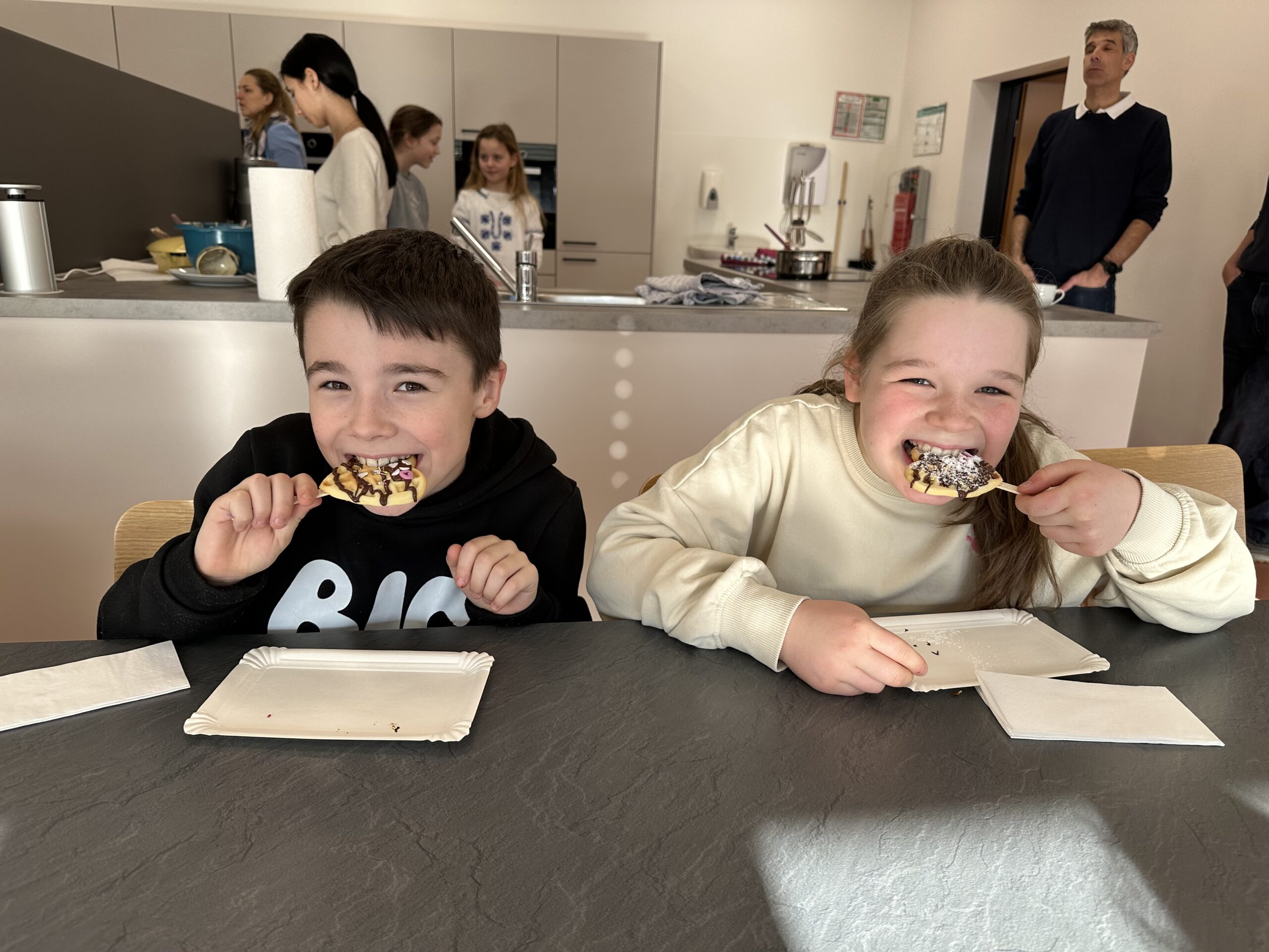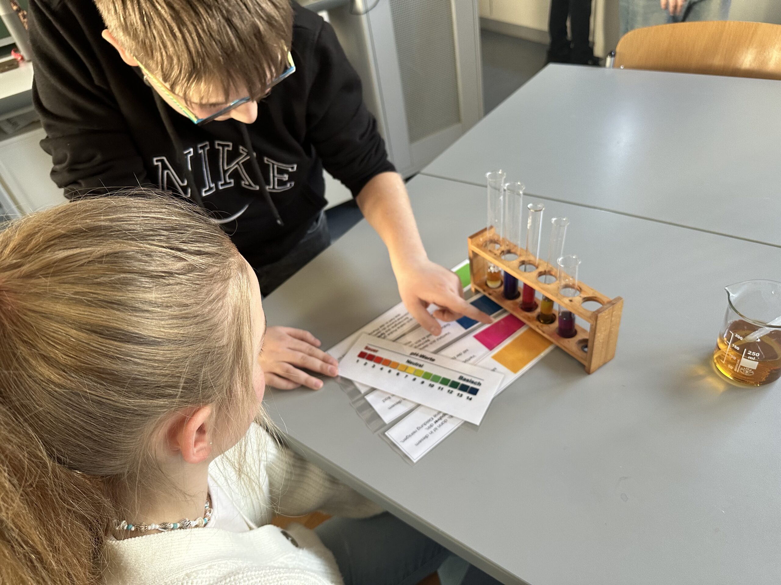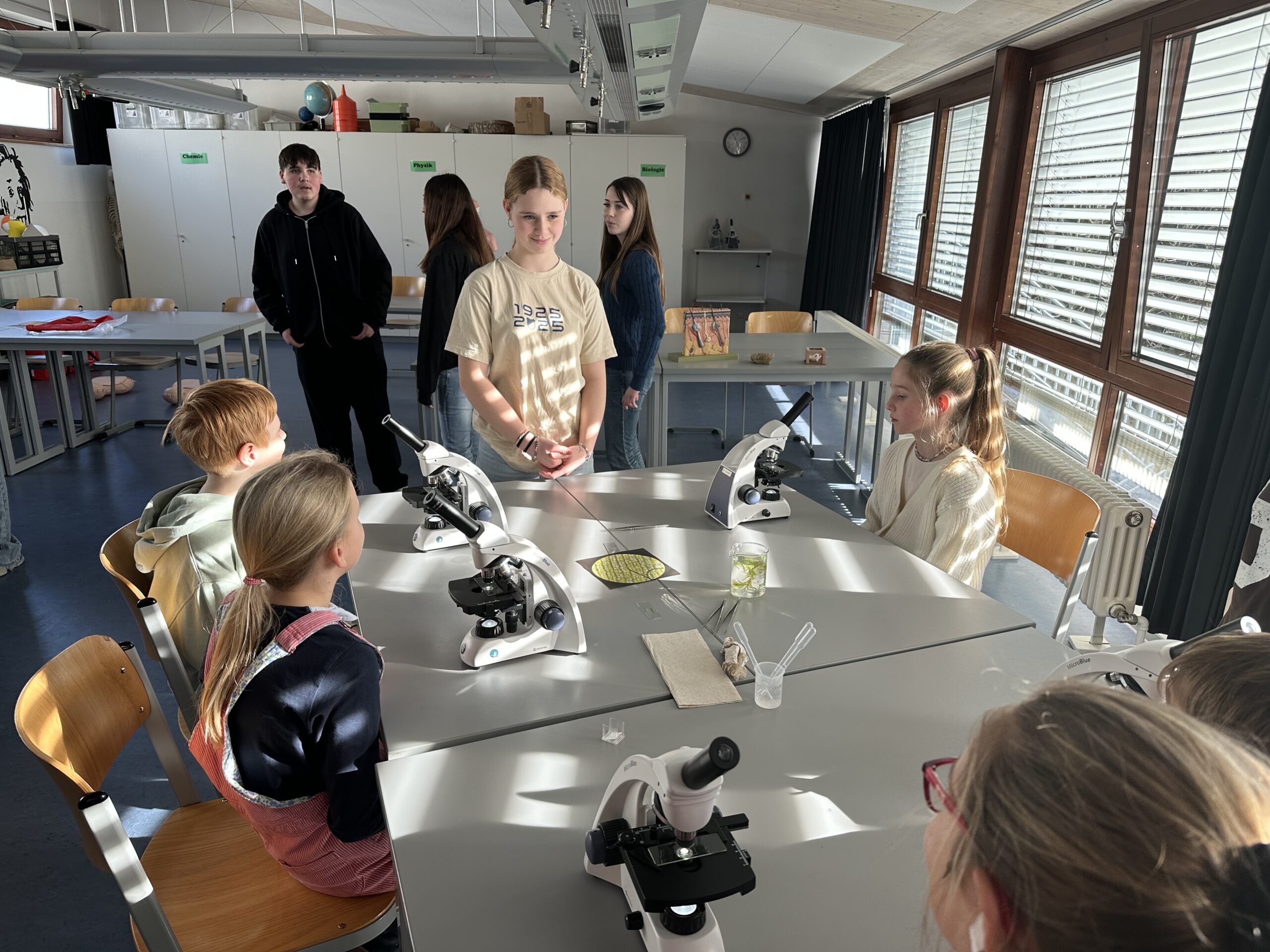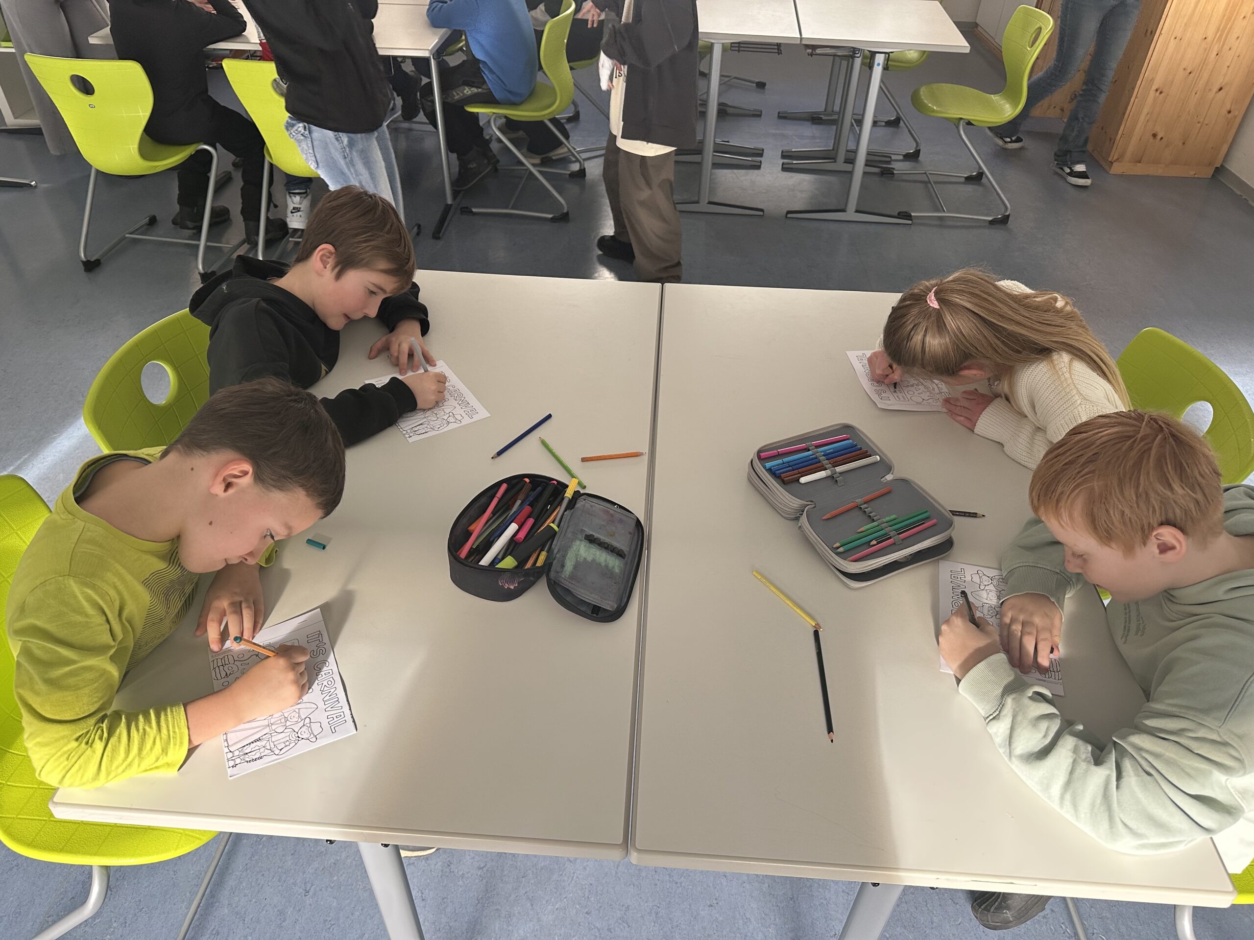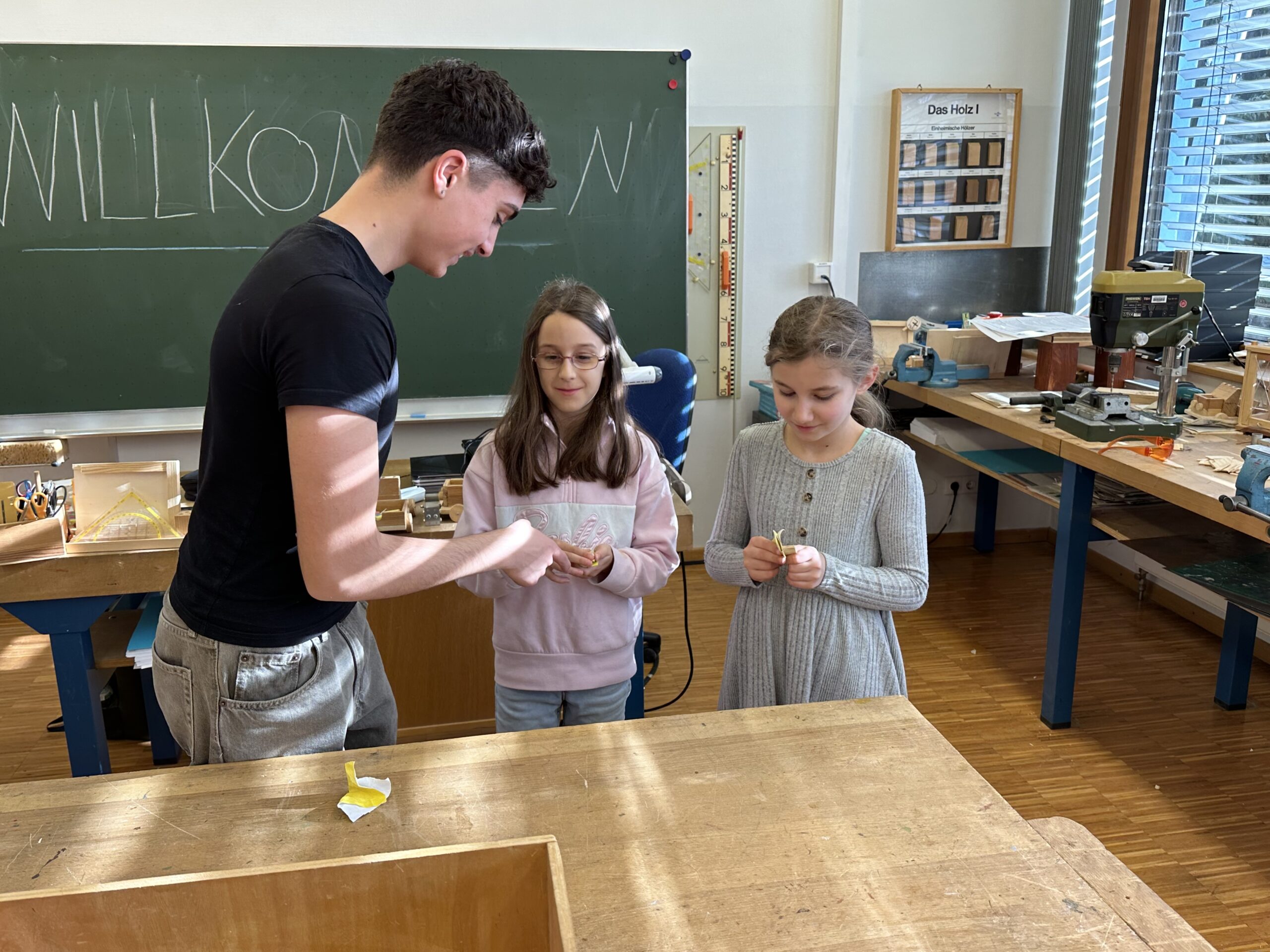 Am vergangenen Dienstag fuhren die beiden vierten Klassen mit ihren Klassenlehrern Herr Klaus und Frau Spieler mit dem Bus von Liptingen nach Emmingen an die Witthohschule. Dort nahm sie der Schulleiter Herr Finkbeiner in Empfang und erklärte den Ablauf des Vormittags. In Kleingruppen aufgeteilt wurden die Grundschüler von den Achtklässlern durch das Schulhaus geführt. In den verschiedenen Klassenzimmern waren von weiteren Klassenstufen Stationen und Aktionen für die Kinder aufgebaut. In der Küche durften Waffeln verziert werden, im Werkraum wurden Schlüsselanhänger aus Holz hergestellt, in Englisch gab es ein Karnevalheft und in Chemie durften Experimente mit sich färbenden Flüssigkeiten gemacht werden. Nach den eindrucksvollen Stunden fuhren die Viertklässler voller Begeisterung wieder mit dem Bus zurück. Vielen Dank an alle Lehrer und Schüler aus Emmingen, die die Witthohschule vorgestellt und mitgeholfen haben!